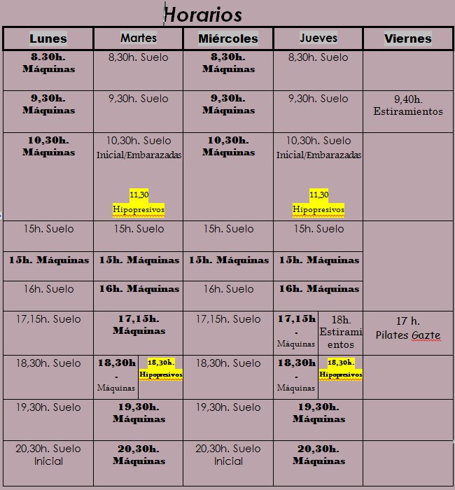 horariopilates 25/03/2011 650 × 700 horariopilates Horario de Pilates Comparte:Comparte esto:TweetCompartir en TumblrinstagramYouTubeCorreo electrónicoWhatsAppMe gusta esto:Me gusta Cargando...